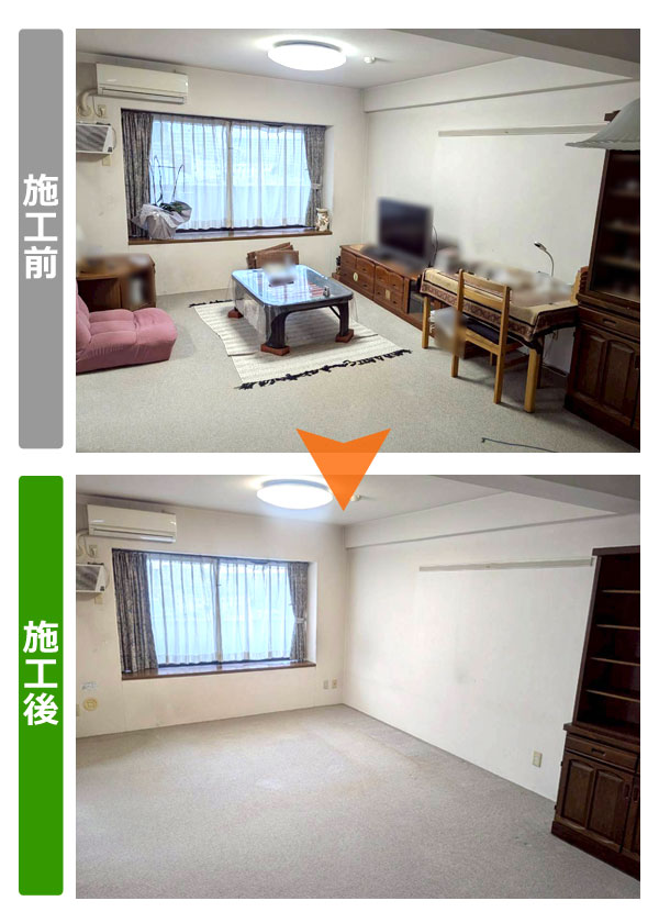 「施工例の写真を見て便利屋サンキューさんに依頼しました。退去日が迫り不安でしたが、翌日という急な依頼にも快く対応してくださり、迅速に片付いていく様子に感動しました。おかげで無事に退去の目処が立ちました。」