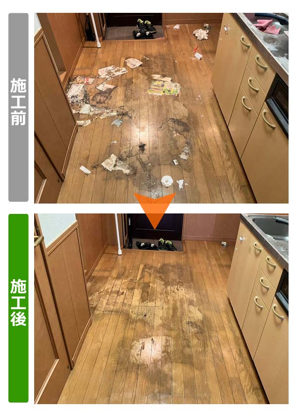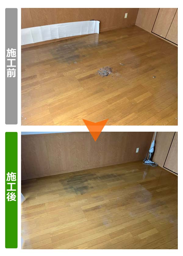 | 施工内容 | 引越し退去後の床掃除 (床にこびりついたチラシや雑誌を除去) |